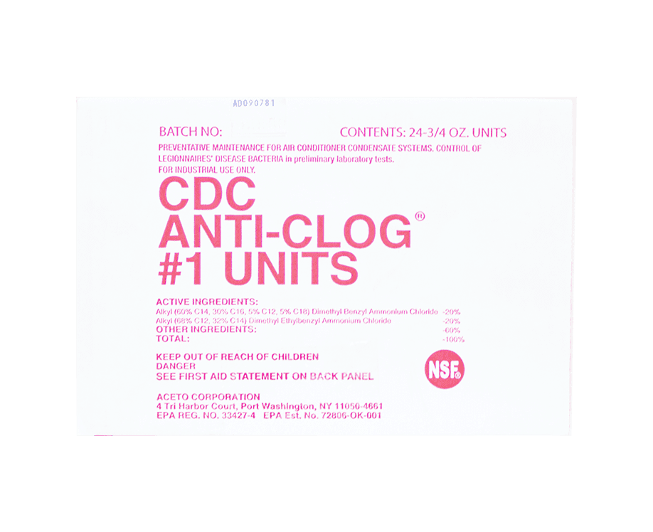 - Anti-Clog#1 stops the growth of bacteria and slime accumulation in air conditioner and refrigeration condensate pans.
