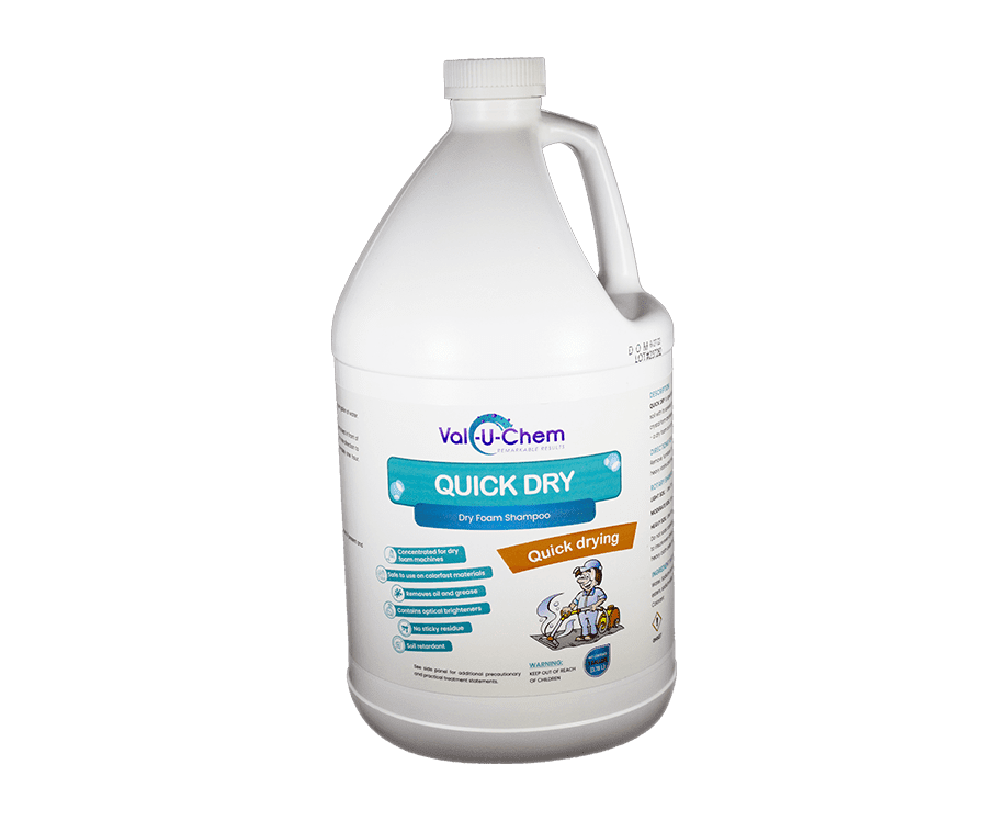 This product is specially formulated for use in dry foam machines. It is safe to use on all colorfast materials. It removes oil and greasy soil with its solvents, as well as water soluble soil. It contains optical brighteners. Dries to crystal form and leaves no sticky residue. This shampoo may be used in either types of carpet machine – dry foam or conventional type.