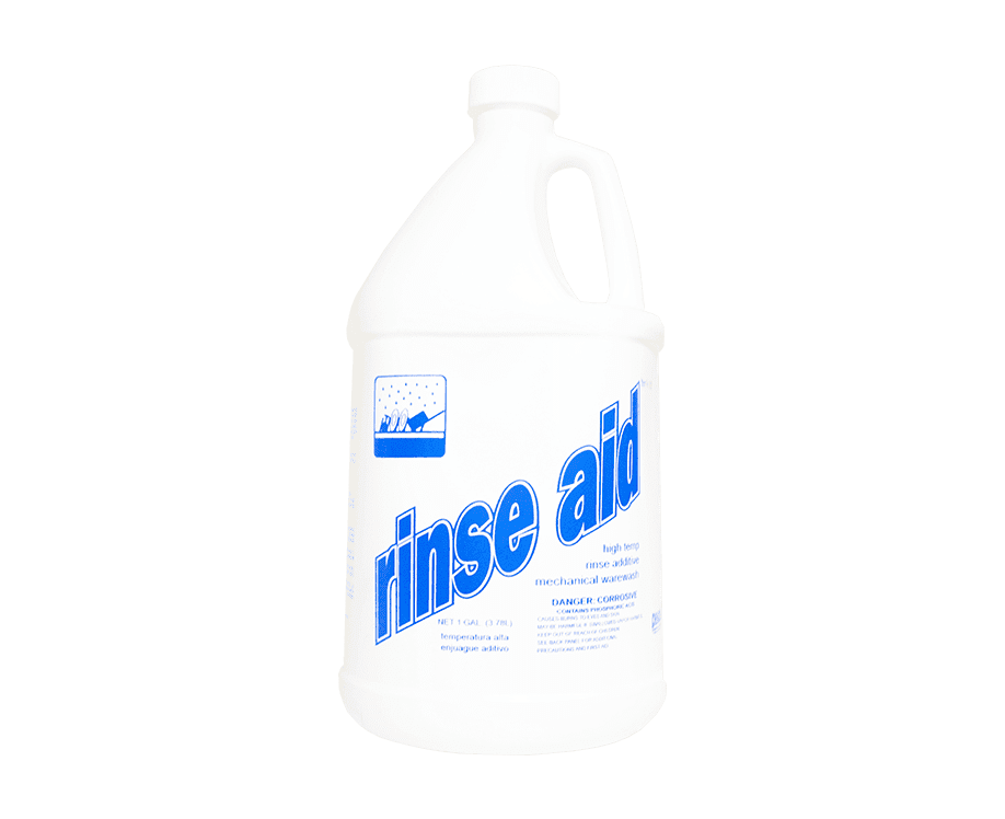 This product is a rinse additive for all high temperature mechanical warewashing equipment. Special wetting agents act effectively in a hot atmosphere to reduce the surface tension of water allowing it to sheet off to aid in the prevention of spotting, streaking and hazing on all glassware, flatware, dishes, china, pots and pans and plastic utensils. Excellent surface wetting promotes complete rinsing, quicker drying time and increases wash spray efficiency.