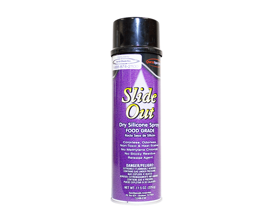 This product is a multi-purpose silicone spray. It leaves a non-staining, dry, pure silicone film to lubricate moving parts, reducing friction and wear. It is heat stable from -30°F to 300°F. Also formulated as a release agent on seals and gaskets of tank closures. Lubricates all sliding surfaces except those you wish to paint. Use on sticking metal, wood, rubber and plastic. Apply to cutting tables, conveyors, heat sealing equipment and slicing equipment. It is an excellent product for food processing plants, restaurants, apparel and accessory manufacturing, tank closure seals, plastic products, RV dealers, hotels/motels, machine shops, homes, service hinges, RV slide outs, auto/RV repair shops and institutions. Won’t melt, freeze, gum up or become rancid.