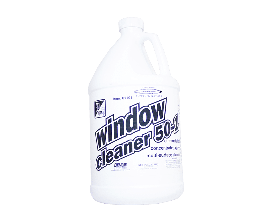 50 to 1dilution. This is a highly concentrated glass and multi-surface cleaner. One gallon of this cleaner will make 50 gallons of ready-to-use cleaner. Ammoniated for quick, fast and easy streak-free cleaning.